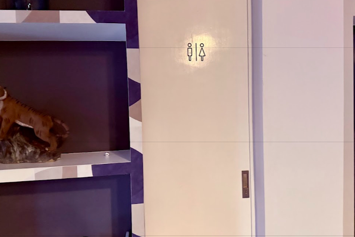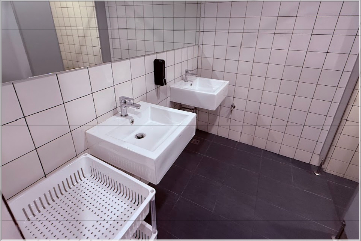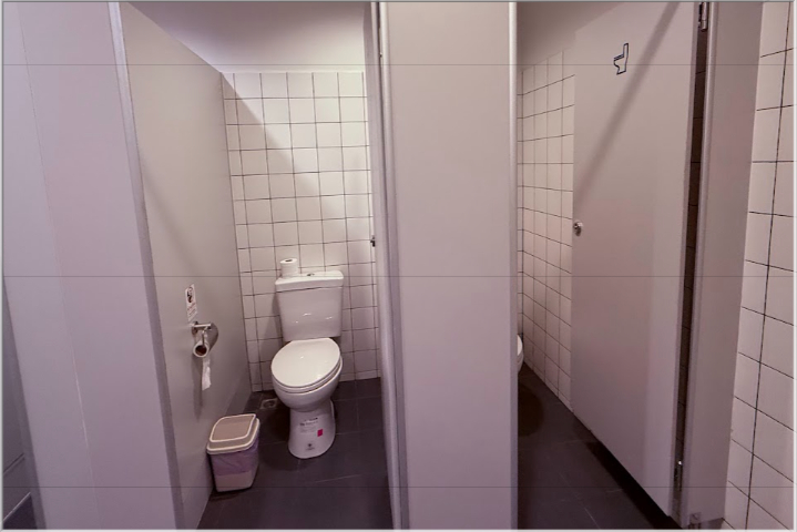 各ドミトリーの入り口ドアと、正面が女性用トイレ&バスルームです。